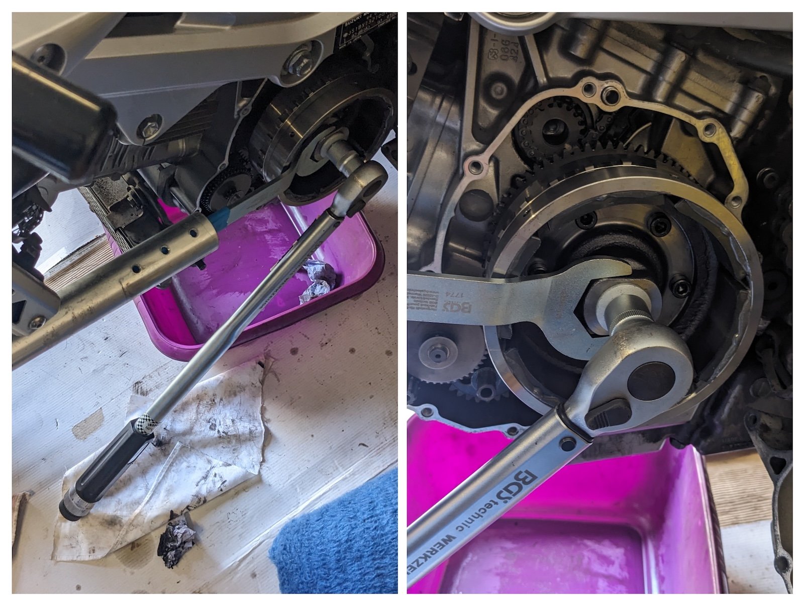 So der Rotor ist draußen und auf dem Weg zum Knubbler :) Angel . Der Abzieher funktioniert sehr gut, sobald man genug Dampf drauf gibt. Mein Makita DTW285 18V Schlagschrauber schaffte das nur mit einem frisch voll geladenem 5.0 Ah Akku. Der Gegenhalter reicht zum lösen auf jeden Fall, insofern man e...