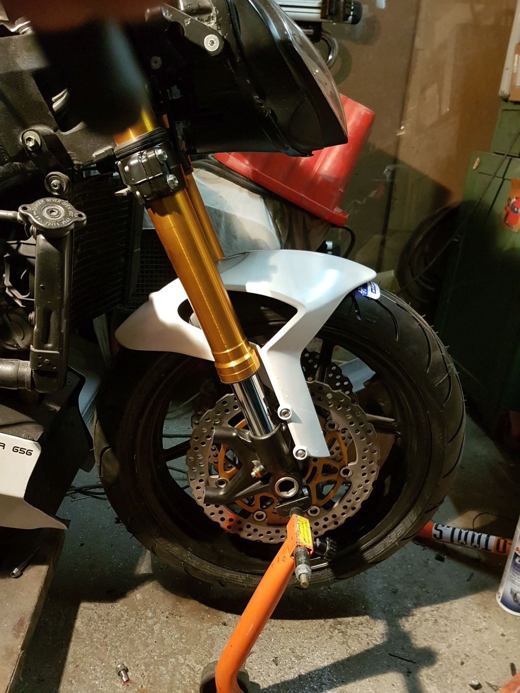 Hallo ihr Winterschläfer, wieder ist ein Sonntagnachmittag in der Werkstatt verstrichen und ich bin so weit wie vorher :( hell ....... 20180218_163834_HD.jpg Front Fender Befestigung ....... die Erste ........ einmal für die Tonne :hammer: Der Fender hängt zu weit vor der Gabel, dadurch schleift die...