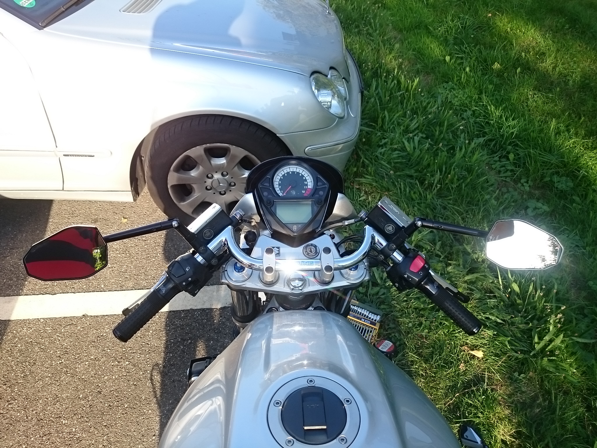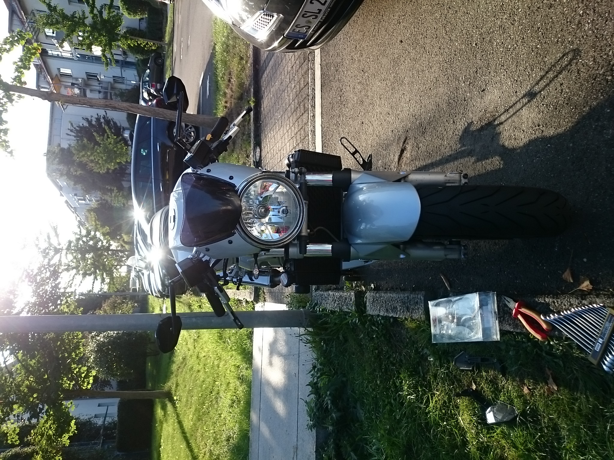 Was wurde geändert, die Spiegel! Hab mich doch wieder für Lenkerendenspiegel entschieden und zwar wieder Highsider diesmal aber die Victory Evo. Die Sitzbank ist auch zwischenzeitlich angekommen, hat insgesamt 6 Wochen gedauert inklusive Hermes - Debakel. Hab ich mir bei Top Sellerie in Frankreich m...