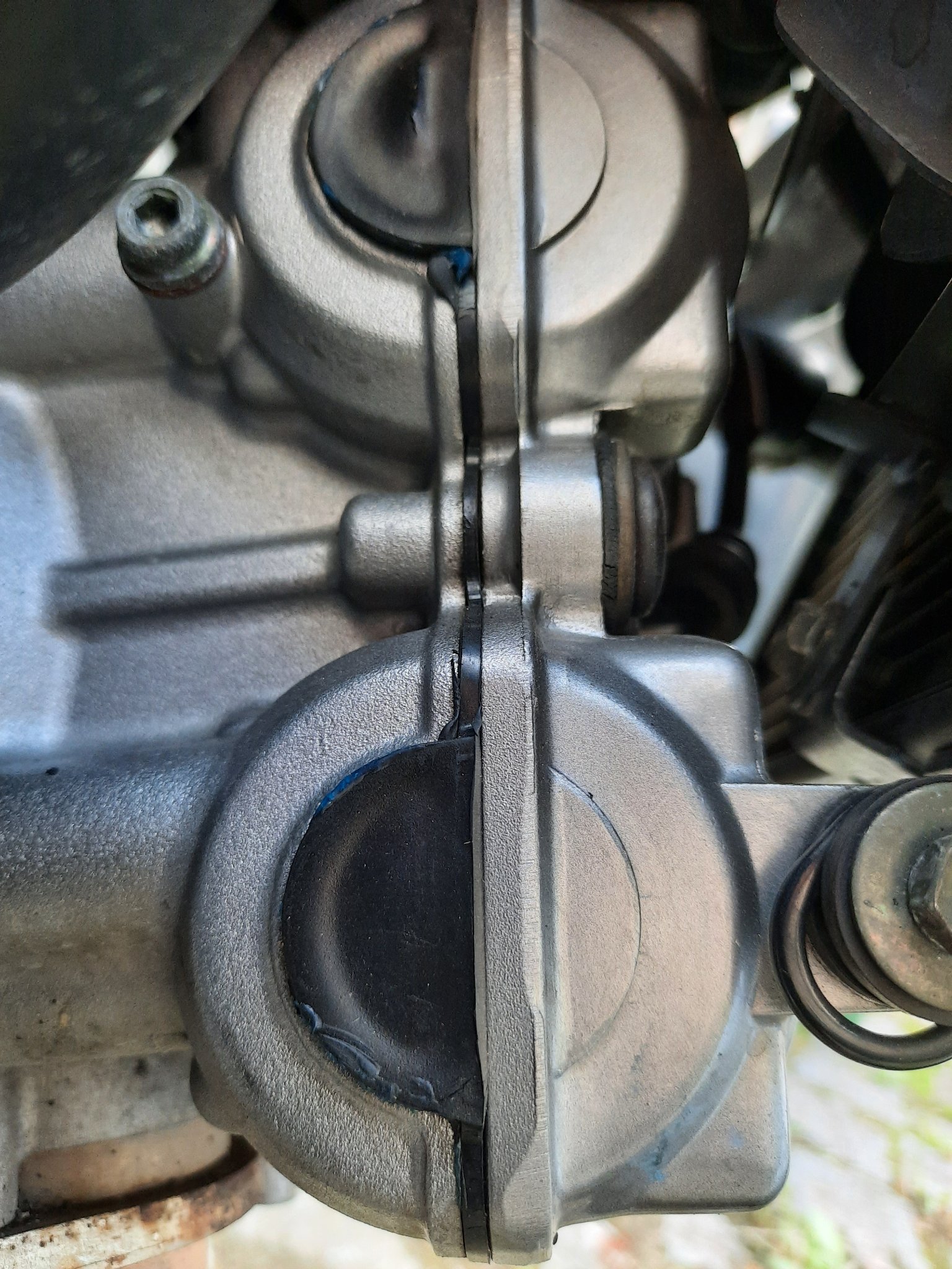 ich habe genau 2400ml eingefüllt und ich habe es auf Montageständer auf Seitenständer und wenn ich gerade drauf sitze gecheckt ich sehe nichts nur wenn ich die SV übertrieben auf die rechte Seite halte.