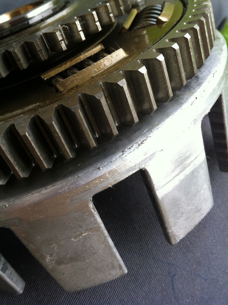 Die Bohrungen in denen die Kupplungsfedern mit Federteller sitzen, sind auch abgenutzt.