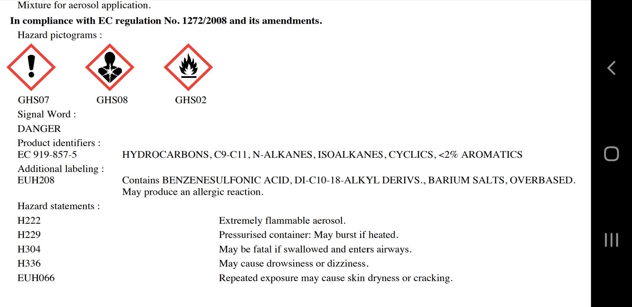 Sicherheitsdatenblatt sagt C9-C11 Alkane und andere Kohlenwasserstoffe.