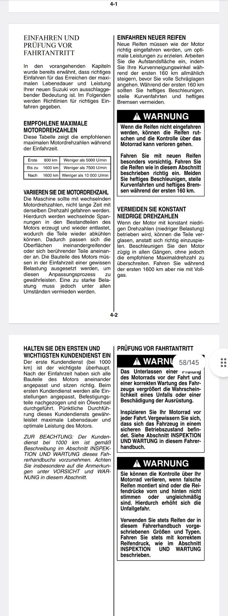 Jo, steht denn in deiner Bedienungsanleitung was zum Thema Einfahren?