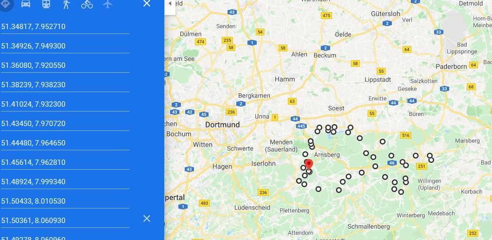 Danach kannst du wählen ob als gpx File für s Navi oder als Maps Link...