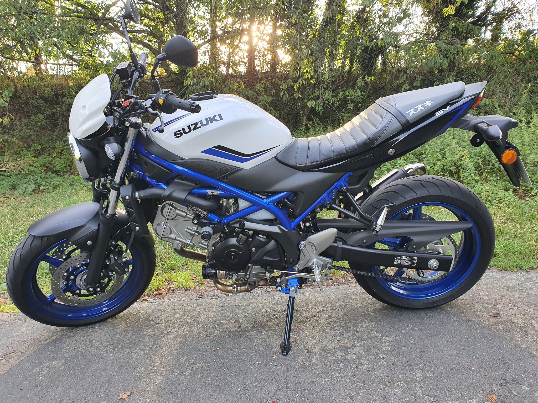 Ich kann nicht nachvollziehen, warum man an einer schwarzen oder schwarz/roten SV leuchtend silberne Fußrasten und Hebel anbringt, wenn man das schwarze Pendant eh schon produziert.