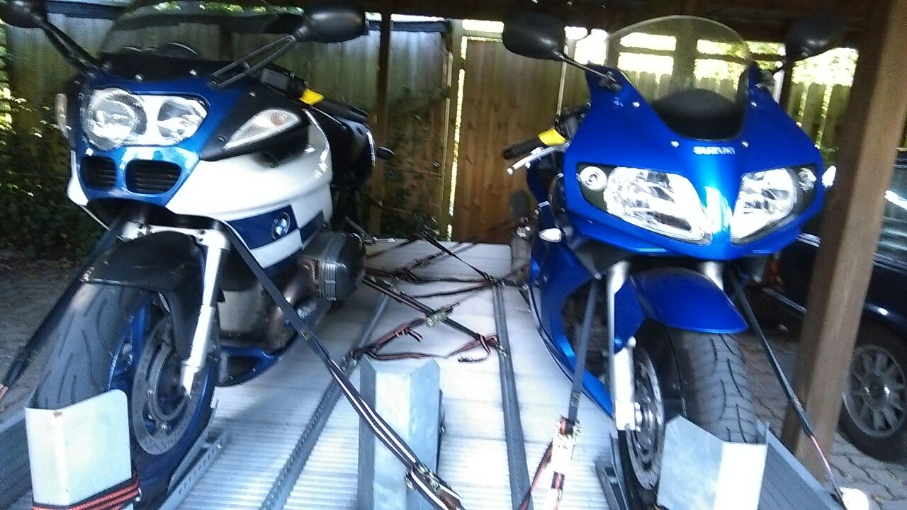Fahren mit Anhänger stellt soweit erstmal kein Problem dar, jedoch habe ich/wir wenig Erfahrung mit dem Transport von Motorrädern.
