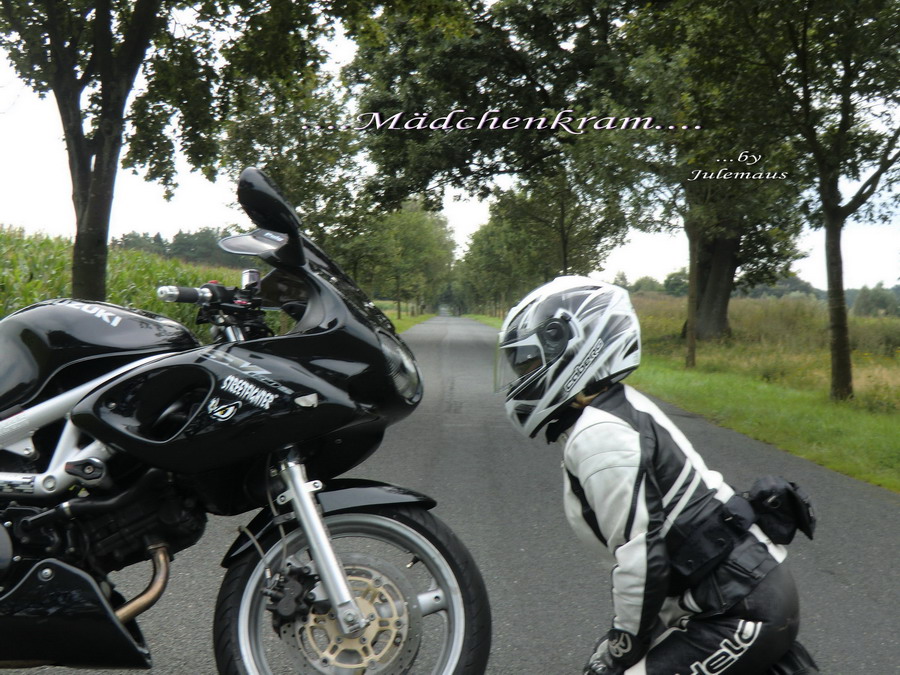 ...und natürlich beim Biken immer mit Halstuch und so ner kleinen Tasche für das "Nötigste"....alles "Mädchenkram" eben :) Angel