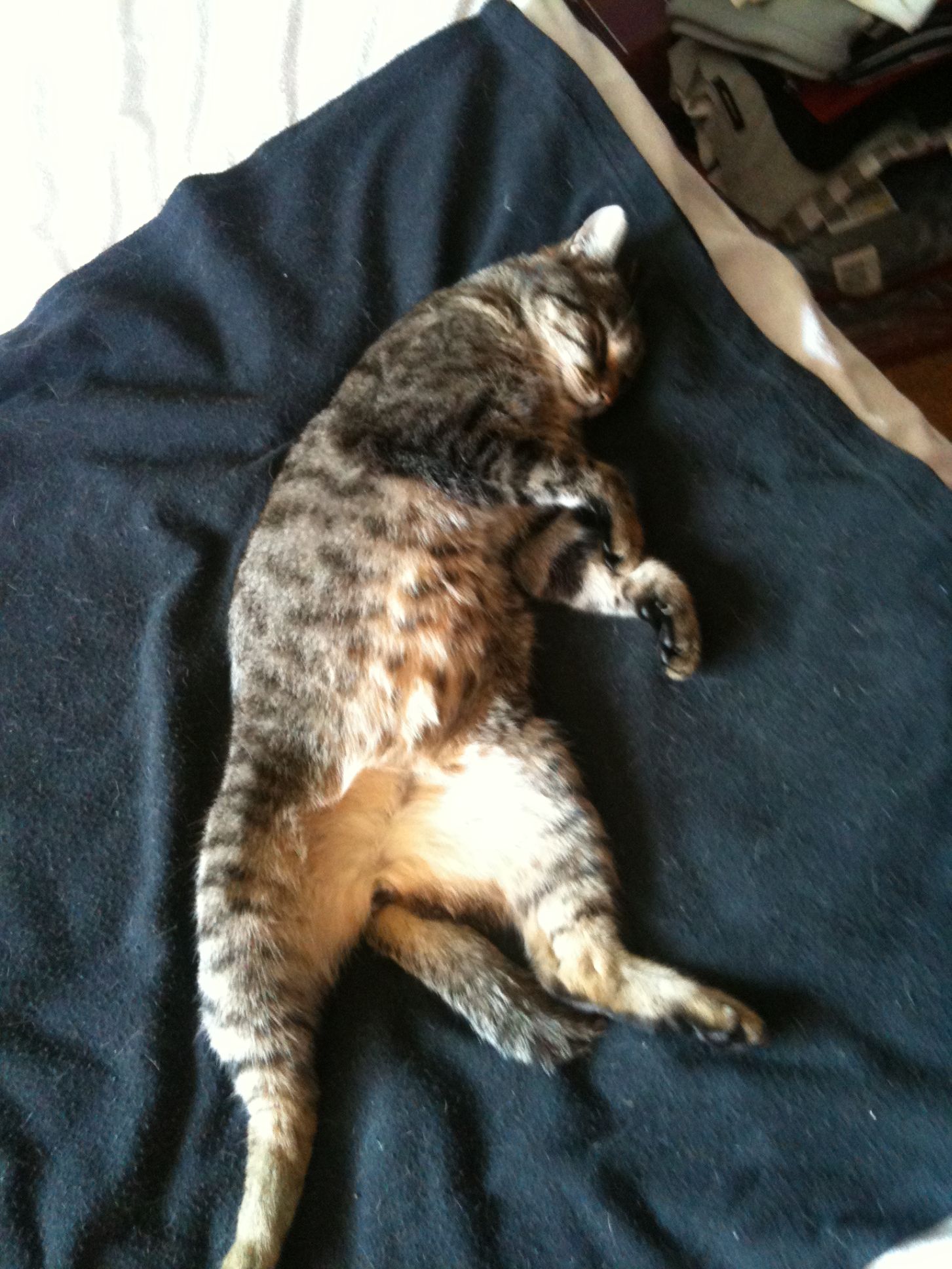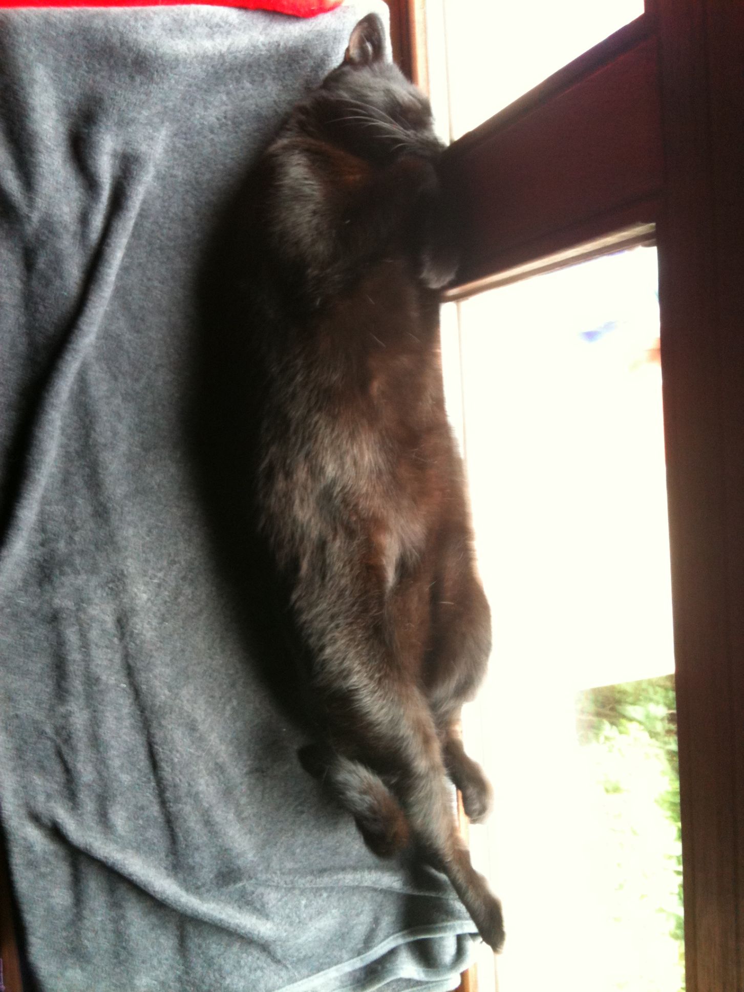 Hier mein schwarzer stubentiger ... er liegt am liebsten iwie auf meinen klamotten oder meinem pc stuhl ^^