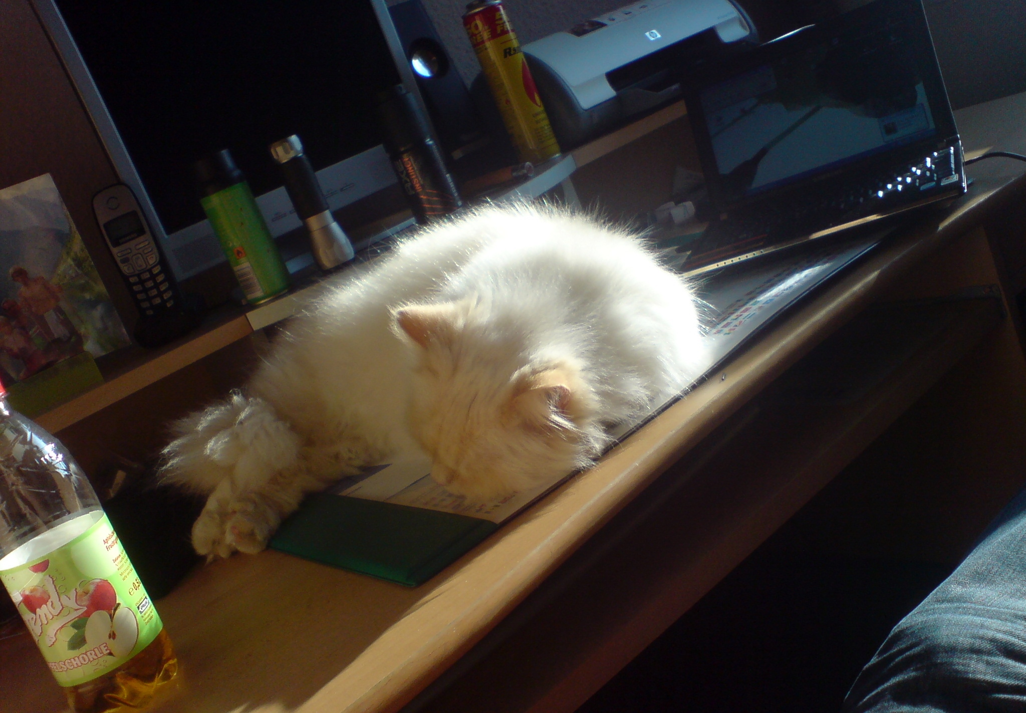 Meine Eltern geben einer Britin Asyl. Liegt meist faul im Körbchen, aber wenn Mum das Haus verlässt, geht Sie bei Daddy um Sticks betteln indem sie sich auf den Schreibtisch ziwschen Ihn und den Monitor setzt.