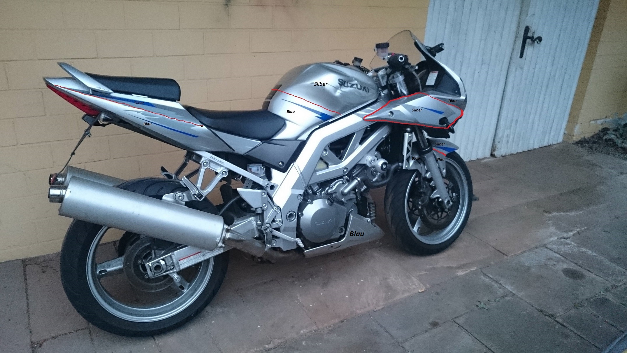 offensichtlich Blau ( in dem Fall wär ein dunkles blau-metallic ganz gut) und Silber zusagen (oder auch andere Kombinationen) könnte man sich immer noch überlegen welche Farbe wo und ob man die Trennlinien mit z.B. dünnem roten Streifen vor dem Klarlack abgrenzt.