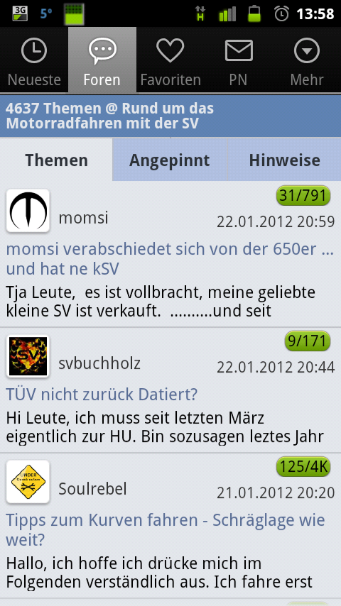 was mir am iPhone tapatalk bei SVRider aufgefallen ist, wenn man zum Hauptmenü zurück geht - also Forum - dann überspringt tapatalk das Hauptmenü und geht zum Netzwerk zurück. Man muss sich also erneut anmelden. Habt ihr das auch?