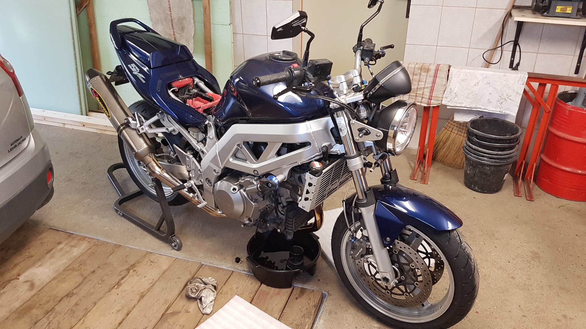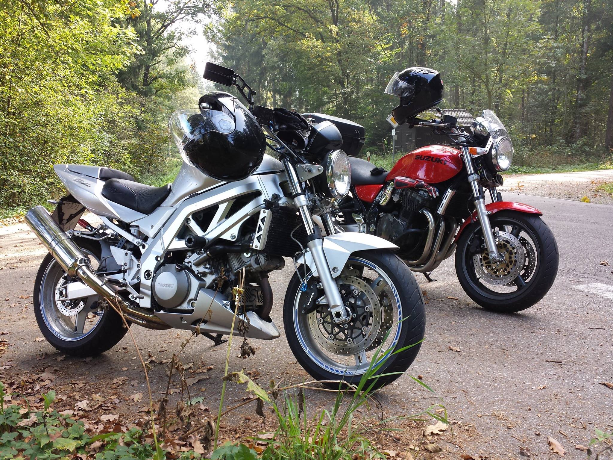 Garageninhalt: 2 x GSX 1400, GSF 1200, 2 x SV 1000 (N und S), GSX 750AE, SV 650 (Knubbel N und Kante S) und CB500