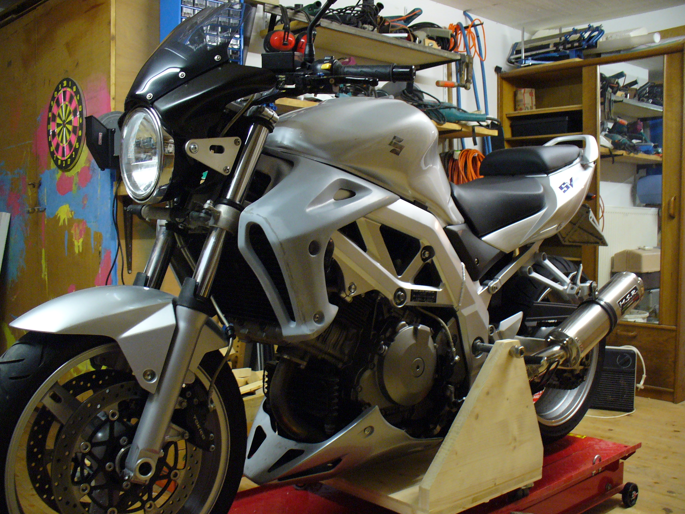 Hab mir vor kurzem eine Kühlerverkleidung zugelegt und mal provisorisch angebracht. In diesem Zusammenhang hab ich die Lampenmaske ebenfalls montiert.