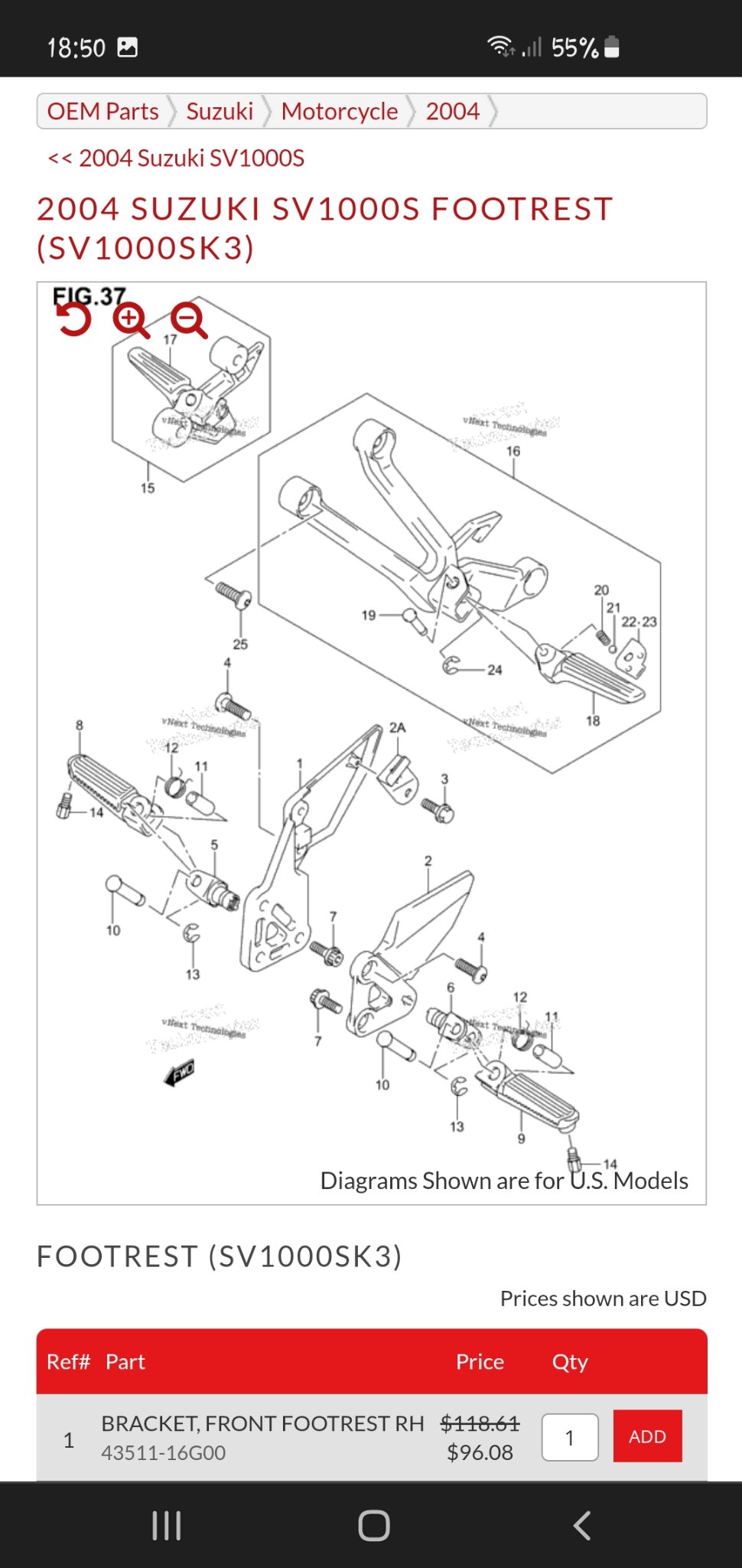 Interessant ist das es diesen Träger trotz gleicher Teilenummer 43511-16G00 teilweise mit und ohne dem von mir gezeigten Halter für den Bremslichtschalter gibt. :?: In den USA habe ich so einen Träger mit dem Halter gefunden.