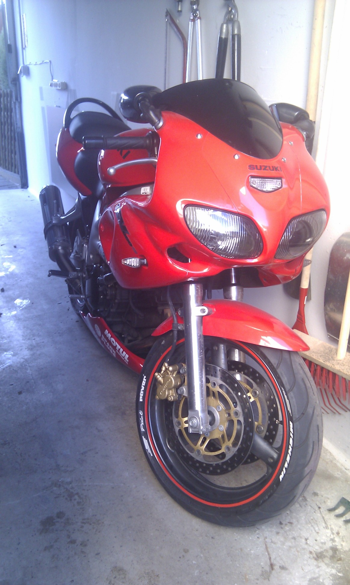Hallo, ich hab meine SV 1000S K3 auf 1000er Gixxer K4 Gabel mit den goldenen Sätteln umgebaut.