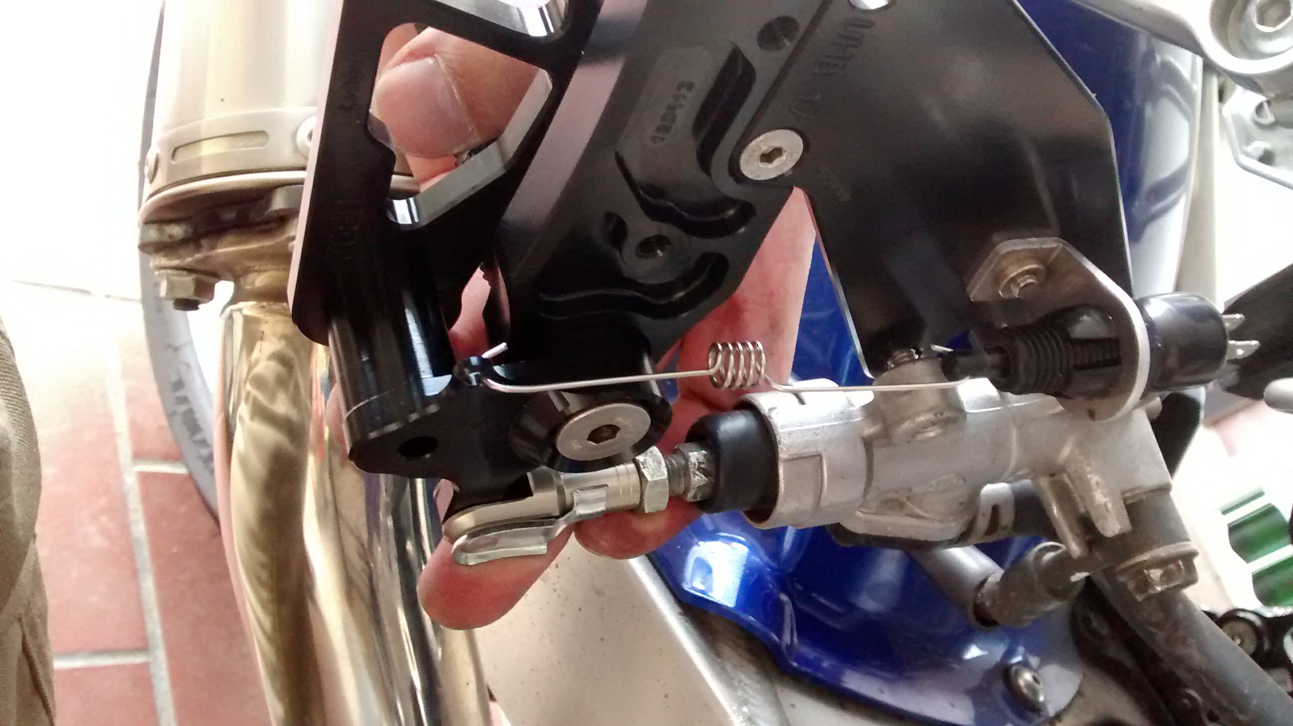 Den Bremslicht Schalter habe ich an seinem Platz gelassen und mit der altern Feder verbunden. Feder läuft zwar schräg, aber funktioniert super.