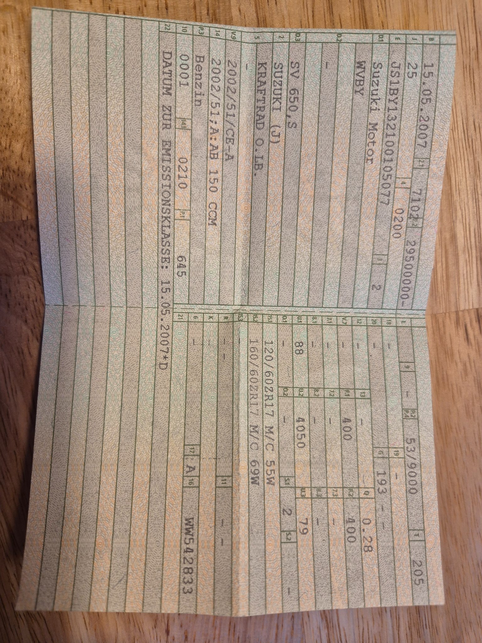 So und jetzt noch mal konkret zum Metzeler Z8 als 120/70er Vorderreifen. Bis Ende des Jahres 2024 dürfen Reifen noch mit UBE fahren. Aber bei dir gelten UBE's leider nicht. Meine Empfehlung wäre mit Hilfe einer Metzeler-Reifenbescheinigung (aus dem Netz) eine Eintragung der geänderten Reifengröße zu bekommen. Diese Bescheinigung stützt sich zwar auf eine europ. Typengenehmigung, aber da die BE deines Fahrzeugs sich auf die identischen Vorschriften stützt, sollte die Eintragung eigentlich kein Problem sein. Sollte der Prüfer/ Sachverständige den Reifentyp (also Z8) eintragen, braucht dich das nicht stören. Der Eintrag kommt nur aus Haftungsgründen rein.