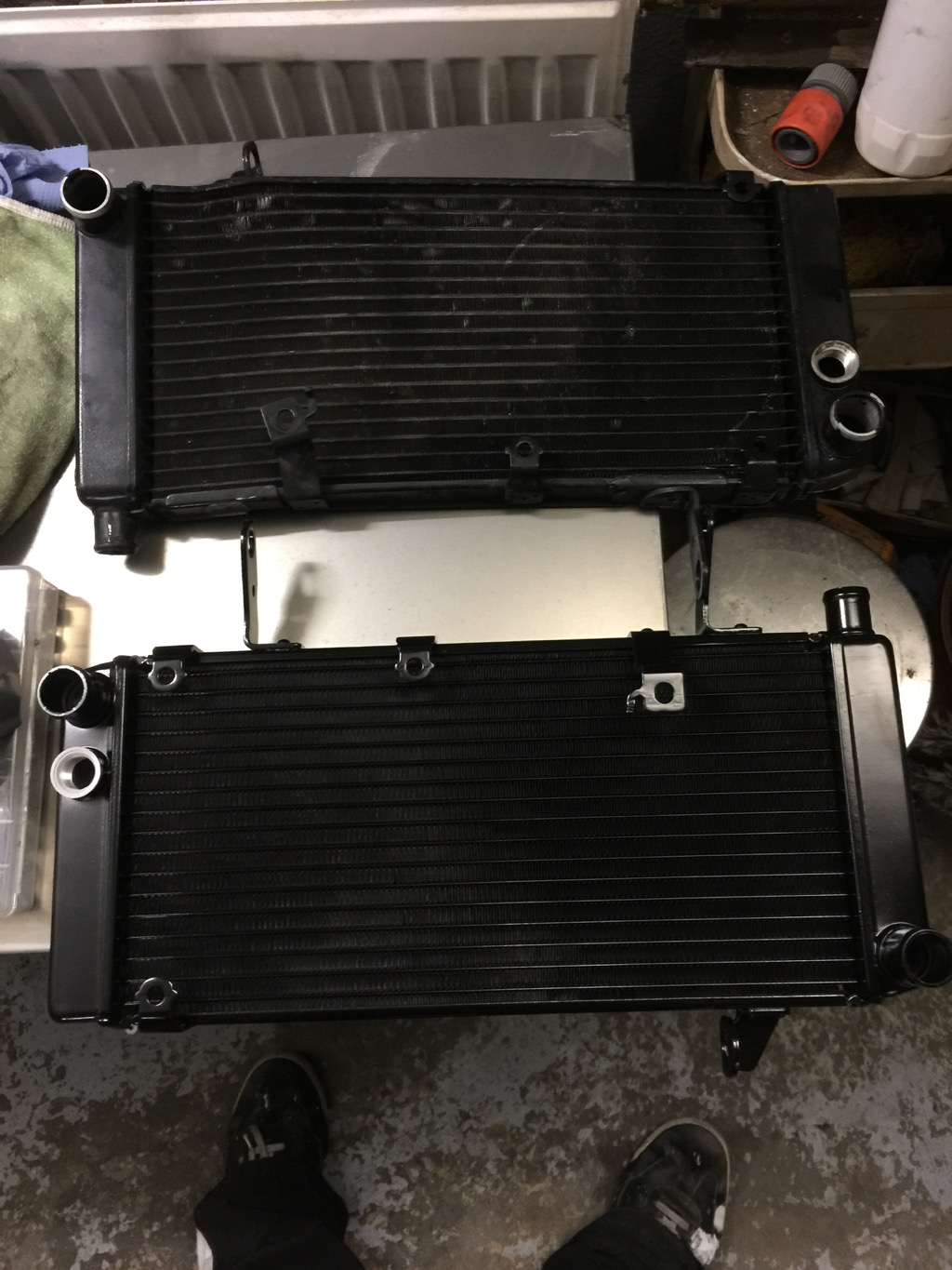Heute hab ich mal angefangen den neuen Kühler zu montieren. Zum Vergleich alt gegen neu: