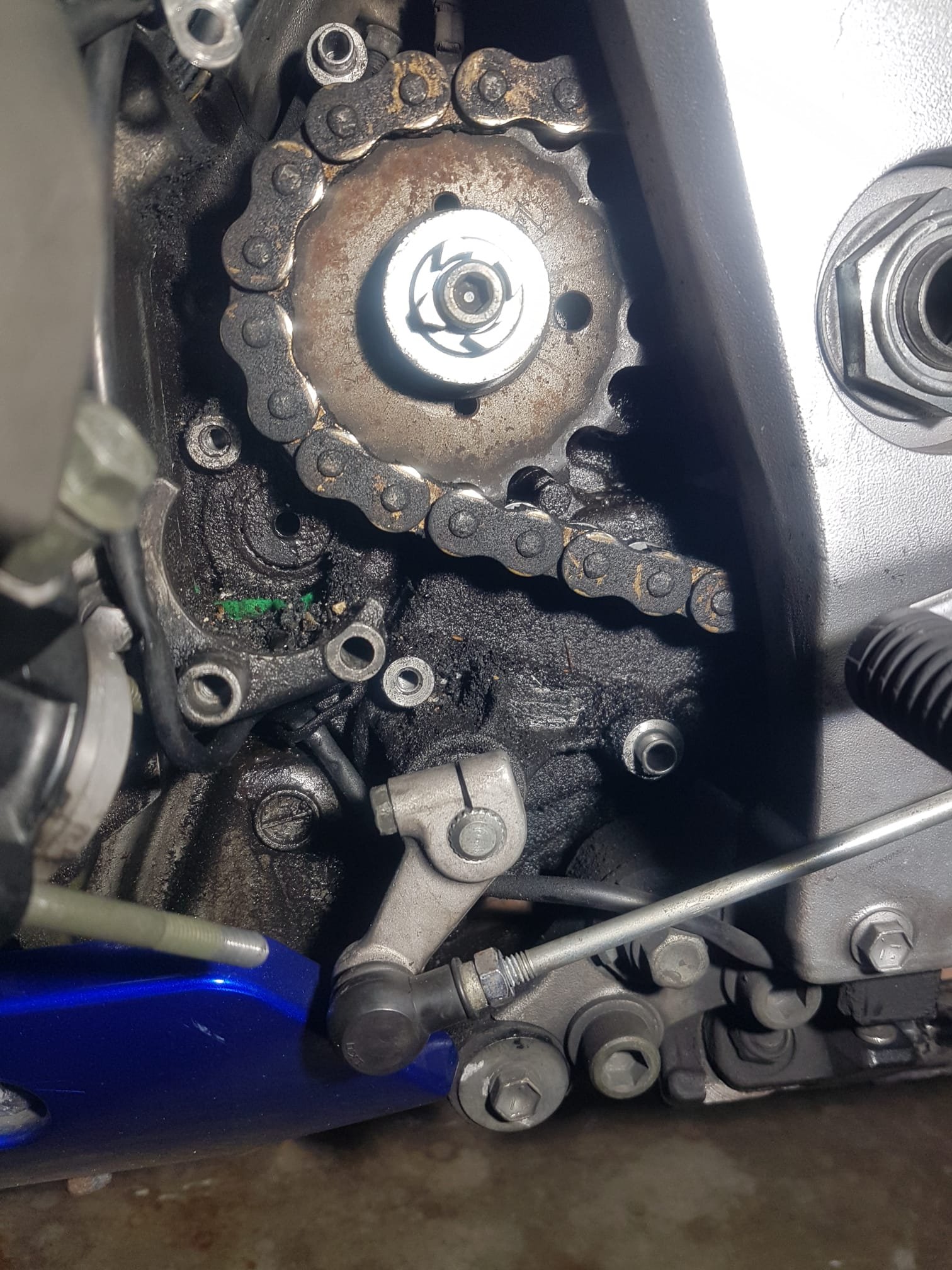 Vor etwa 1500km habe ich die Magnete am Rotor kontrolliert und entsprechend die Dichtung erneuert. Ich dachte zuerst, es wird von dieser kommen. Nach Abnahme der Ritzelabdeckung glaube ich aber, dass es von da irgendwo kommen muss. Da ist schon ziemlich Schmodder drin und die Kette ist auch auffällig dreckiger als sonst, bilde ich mir ein. Ich habe nach dem höchsten Punkt mit Ölfilm gesucht und bin irgendwo bis knapp oberhalb des Ritzels gekommen. Der Schmutz könnte aber auch von der Kette hochgeschleudert worden sein, wobei das Ritzel ölfrei ist. Was meint ihr mit Blick auf die Bilder?