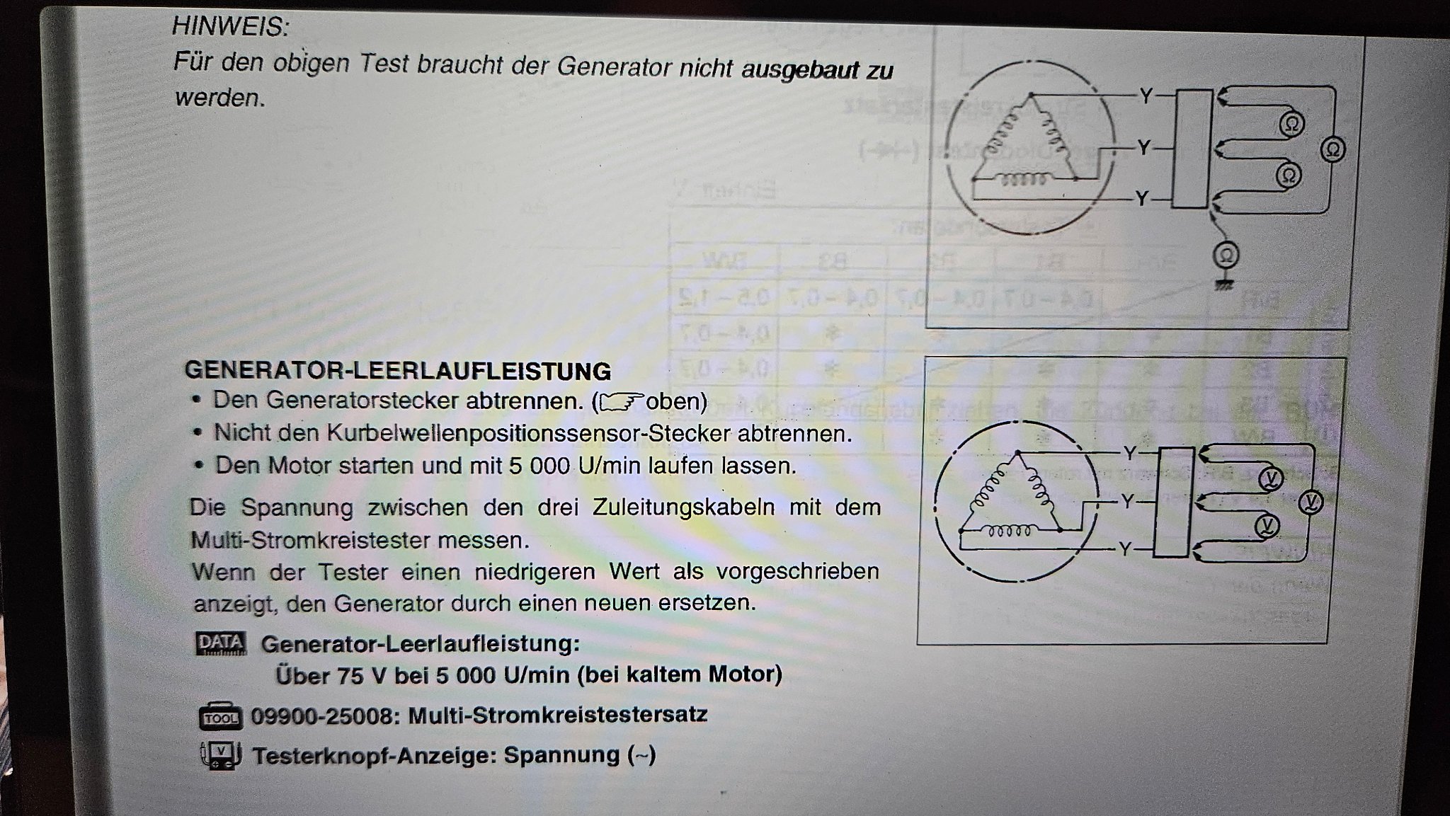 Sollten im Standgas ca. 20 Volt habe. Wichtig! Alle 3 müssen etwa gleich sein
