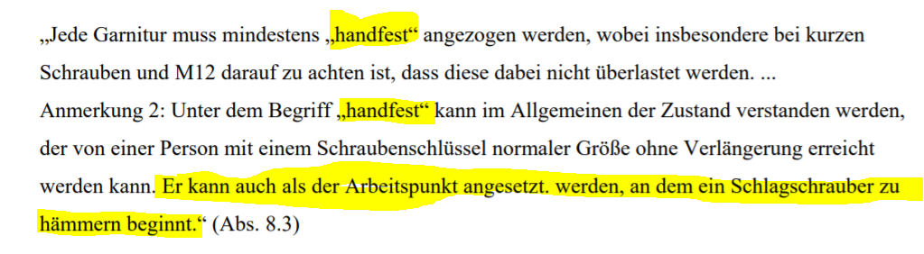 Lustig ist was die DIN 1090 bzw. die 18800 für Stahlbau zum Schlagschrauber sagt: