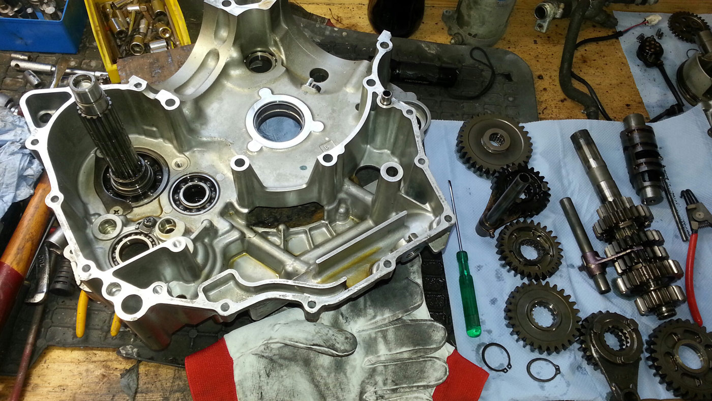 Gehäusehälften getrennt, Kurbelwelle und Getriebe raus....