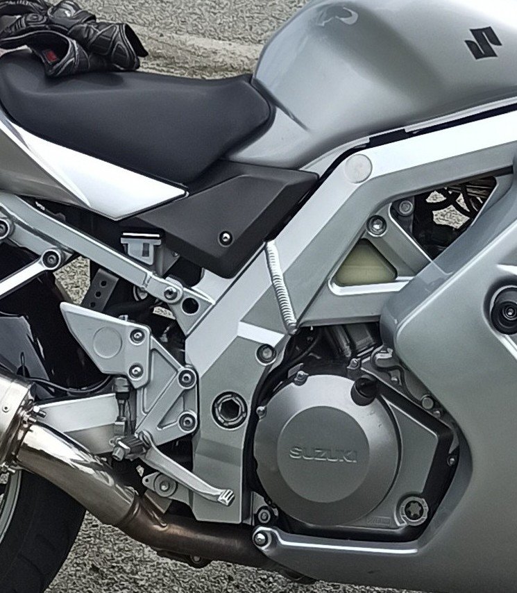 S statt Suzuki, keknickter Heckrahmen, flacher Auspuff,
