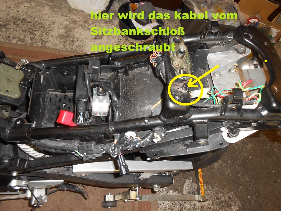 Dann ist der Seilzug für den Soziussitz ausgehakt und nicht festgeschraubt, wisst ihr wo ich diesen festschrauben muss?