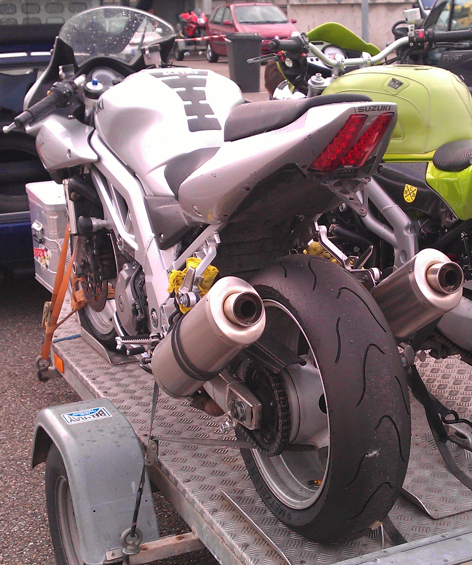 Strassenreifen taugen auf der Renne nicht, ich weiß nicht wieviel 1000der da noch dran glauben müssen bis die Leute das einsehen. Das Bild unten ist das VR! nach 5 Runden, in der 6. bin ich runter weil der Reifen nach einmaliger Ankündigung ("Hilfe schon mich") in der Nordkurve gleich zwei Kurven später beim Rausbeschleunigung auf die Parabolika...oder mehr mitten in der Parabolika...sowohl vorne wie hinten den Dienst quittiert hat und über beide Räden einfach unverhältnismäßig stark nach aussen gewandert ist. Während diesem Turn hatte ich ein "Date" mit nem Instruktor welcher hinter mir her gefahren ist und nach dem Turn das Verlassen der Rennstrecke mit den ersten Worten "absolut richtige Entscheidung" kommentiert hat.