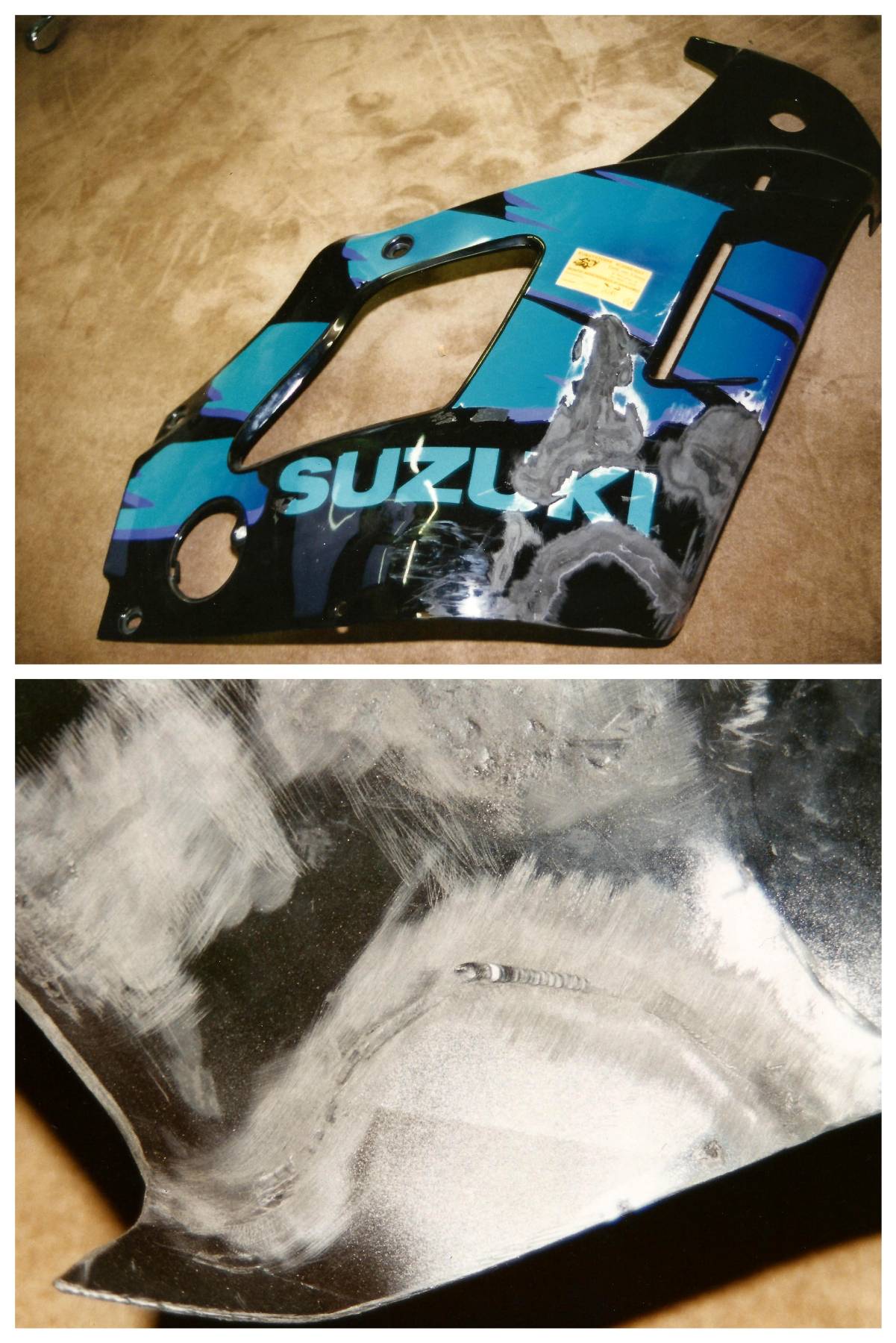 - Teile aus thermoplastischen Materialien ( meistens Verkleidungsteile aus z.B. ABS ) werden durch das Kunststoffschweißverfahren repariert. Hierbei wird ein Schweißstab aus dem gleichen Material verwendet, aus dem das Verkleidungsstück besteht. Nach der Reparatur weist das Bauteil dann die selben Eigenschaften ( Festigkeit oder Flexibilität ) wie ein neues Bauteil auf.