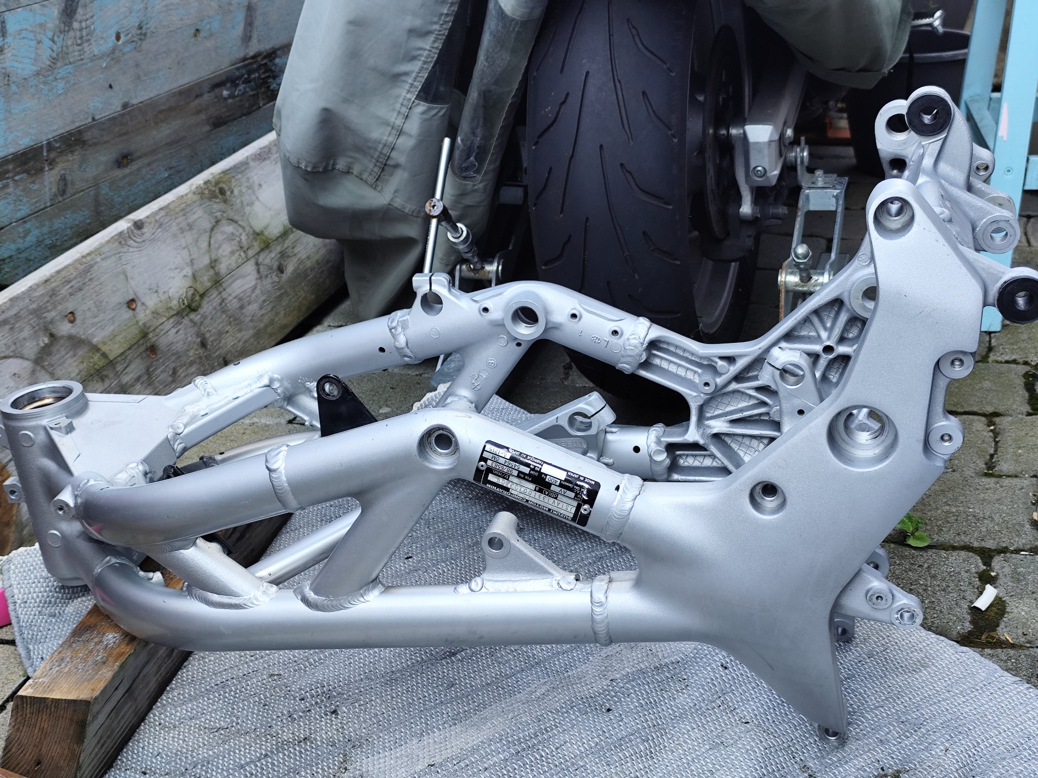 Aber leider ist die Seitenständeraufnahme am Rahmen gebrochen sowie eine kleine Delle am rechten oberen Rahmenrohr , das war dann das aus der kleinen Suzi. Sie Stand jetzt über eine halbes Jahr, nach dem Unfall, bei uns abgedeckt und wartete auf ihre Schlachtung.