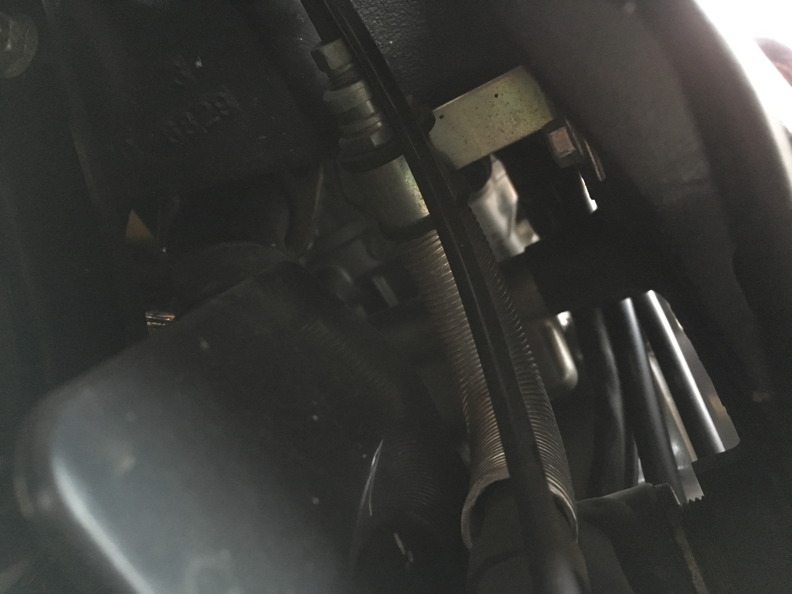 Auf den Bilder kann man das kurze Stück Leitung der Hintren Bremse sehen und die versteckte Verschraubung der langen Bremsleitung vom Bremssattel weg.