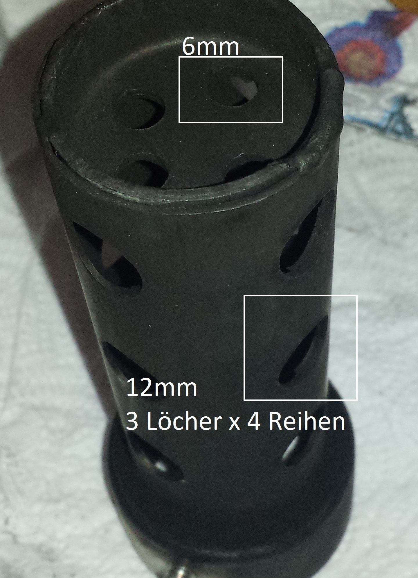 Aber da sieht man die Löcher auf der vorderseite nicht. Deine 12mm Löcher könnten aufgebohrt sein.