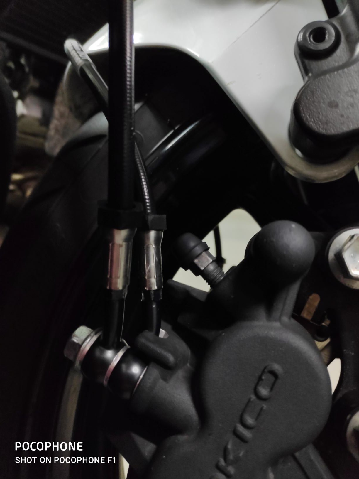Das Entlüften ist nervig. Irgendwann habe ich dabei den linken Sattel abgebaut und hochgehängt. :)