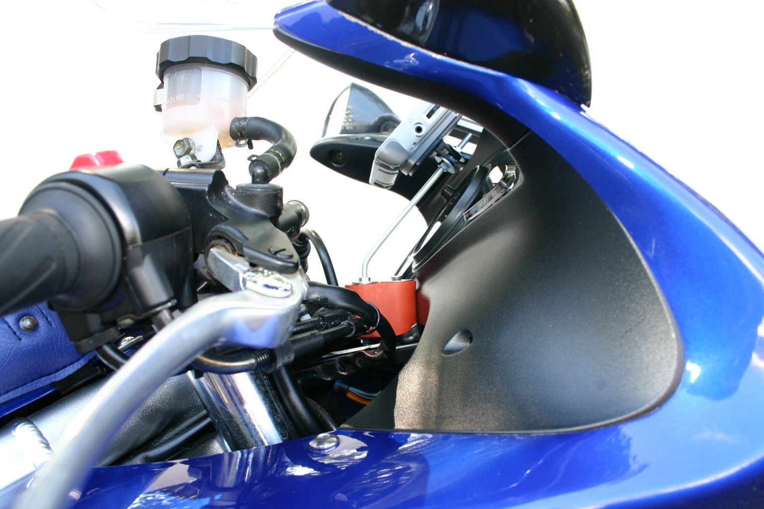 An der Halterung der Verkleidung festmachen, dann ist es auch geschützt wenn es mal regnet. Nachteil ist dass dadurch der Drehzahlmesser verdeckt wird, wobei der total unnötig ist, ich höre doch wie hoch die Knubbel dreht.