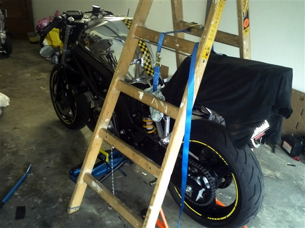 Außer die Demontage von Verkleidung und Ähnlichem habe ich überhaupt keine Erfahrung mit dem Demontieren von Motorrädern. Ich habe auch (noch) keine Möglichkeit, das Mopped irgendwie aufzuhängen. Besteht für mich trotzdem eine einfach und kostengünstige Möglichkeit, die Schwinge und die Felgen auch noch schwarz zu bekommen? Oder würde das das ganze nur verschlimmern?