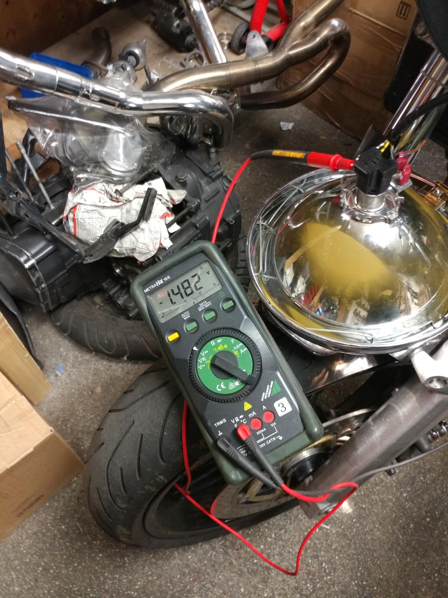 Ich habe vorhin mal die GS durchgemessen (Naked, Rundscheinwerfer). Es kommen bei Standgas 12V am Abblendlicht an, Fernlicht 11,5V, trotzdem habe ich nur ein Teelicht drin. Mglw ist auch die Birne alt, no-name oder der Reflektor ist blind.
