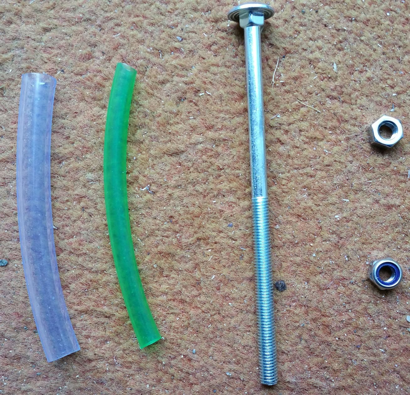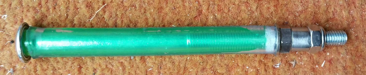 habe ich jetzt eine nicht schöne, aber griffigere Lösung als der wabblige Riemen. Dazu muss zwar die Sitzbank runter, aber das geht ja schnell und der Vorteil ist, man sieht das Teil im "Normalzustand" nicht. Ich habe eines der beiden M8 Gewinde unter der Bank benutzt. Kostenpunkt bei OBI 3,04 Euro (den Plastikschlauch habe ich nur drauf geschoben, damit ich besser anfassen kann (der 8er war doch arg dünn)