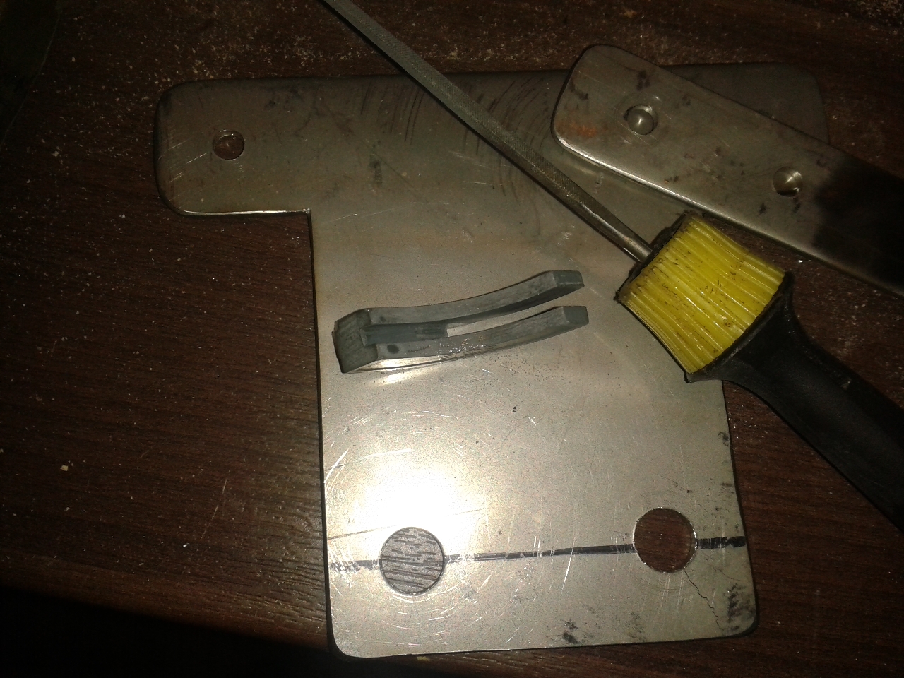 Da ich die vollständige Drosselfähigkeit des 3P-Limiters (so heißt die Drossel) beibehalten möchte, habe ich die Innenseite des Bogens bearbeitet. Ich hab dazu meinen Dremel in einen Schraubstock eingespannt und einen Schleifaufsatz für den Dremel verwendet (ca. 120er Körnung, weiß aber nicht so genau). Die Drehzahl hab ich mit dem Regler auf 2 von 6 Stufen eingestellt. Nun noch kurz mit einem Edding den Bereich markiert der weg soll und los geht es. Es ist ratsam die Drossel behutsam zu bearbeiten, da sie keinen allzu stabilen Eindruck macht.