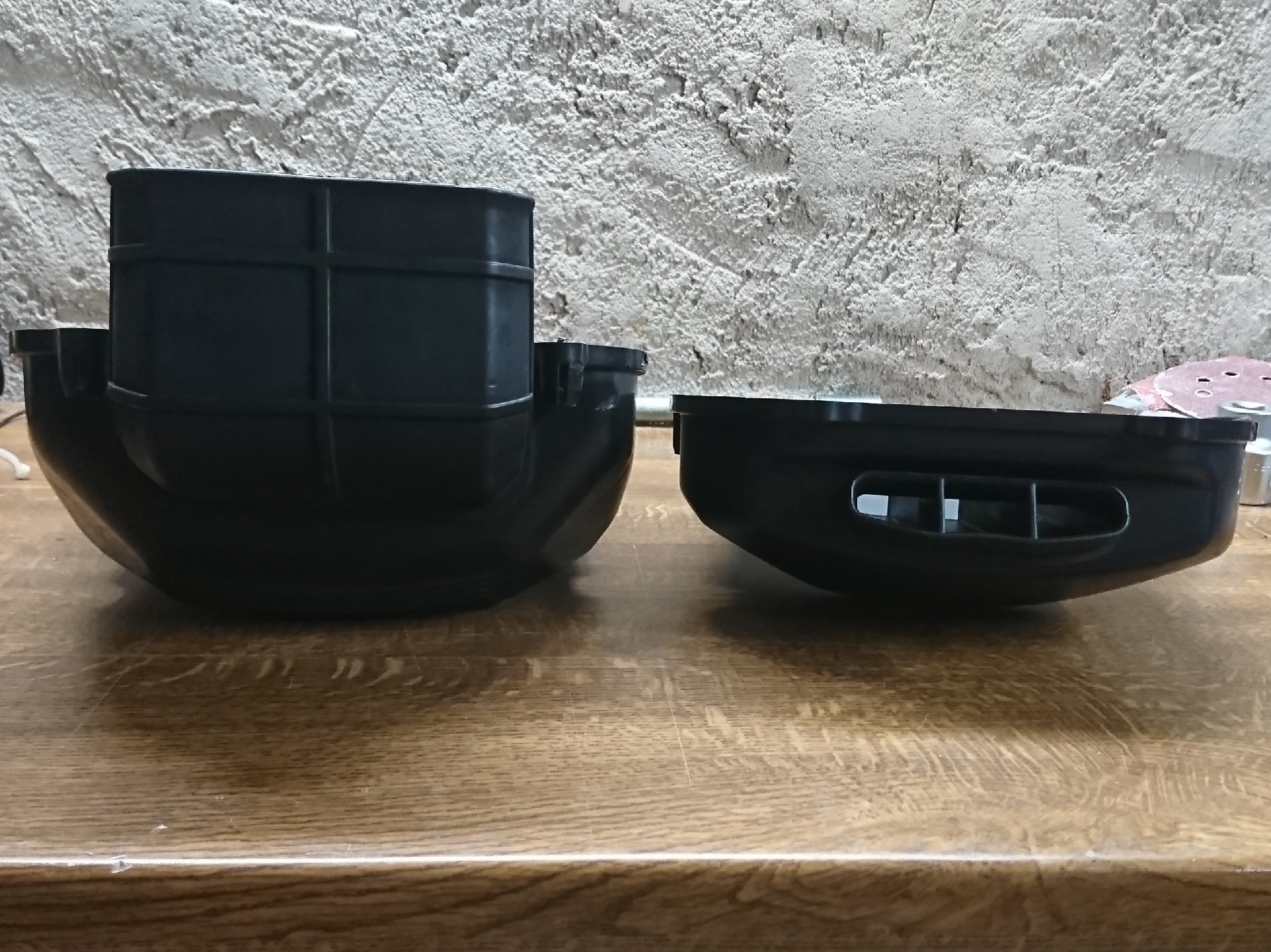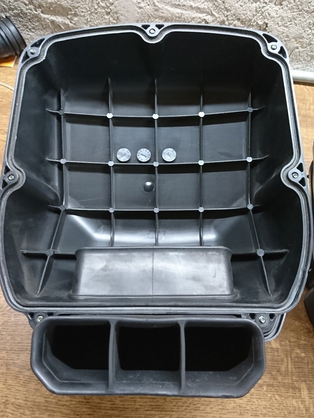 Gestern war es soweit, ich habe die Gladius Trichter in meinem Luftfilterkasten montiert. Anbei ein paar Bilder. Links ist immer der Luftfilterkasten meiner SV 650 S K3 und rechts ein Luftfilterkasten einer 2015er SFV 650 Gladius. Man sieht deutlich, dass der Luftfilterkasten der Gladius kleiner ist. Der Deckel baut viel flacher...