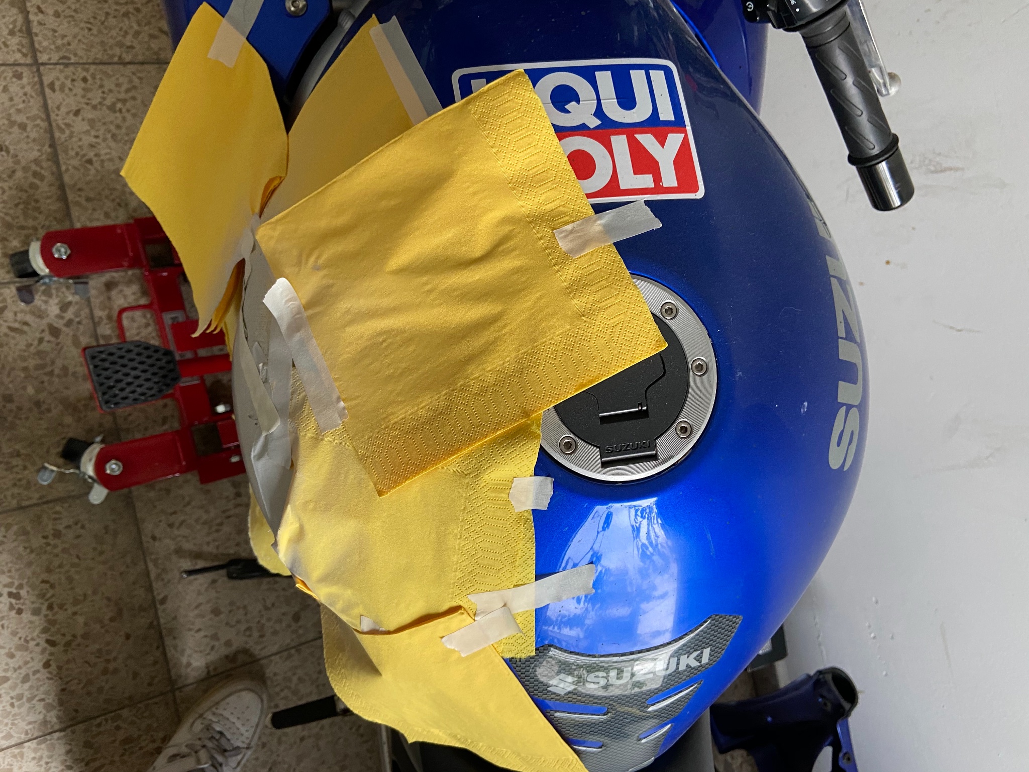 Zuerst habe ich alles mit 320er Papier geschliffen und dann mit Silikon entfernter gereinigt.