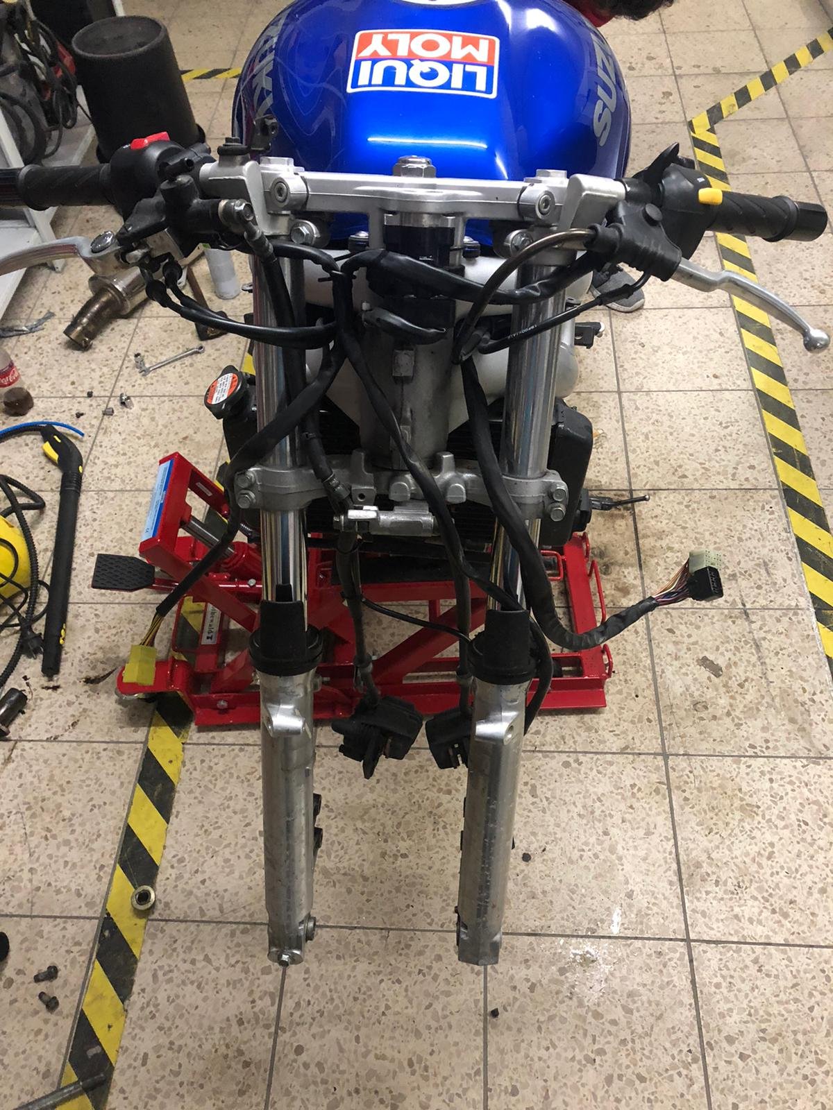 Die Gabelfedern wurden vorne eingebaut, das Öl getauscht und die Simmerringe getauscht.