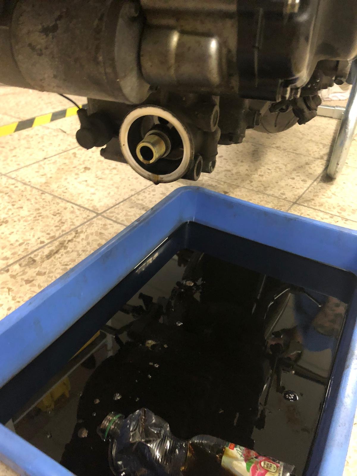 Das Öl wurde getauscht. Das alte Öl war sehr schwarz und ich glaube es war an der Zeit mal neues einzufüllen.