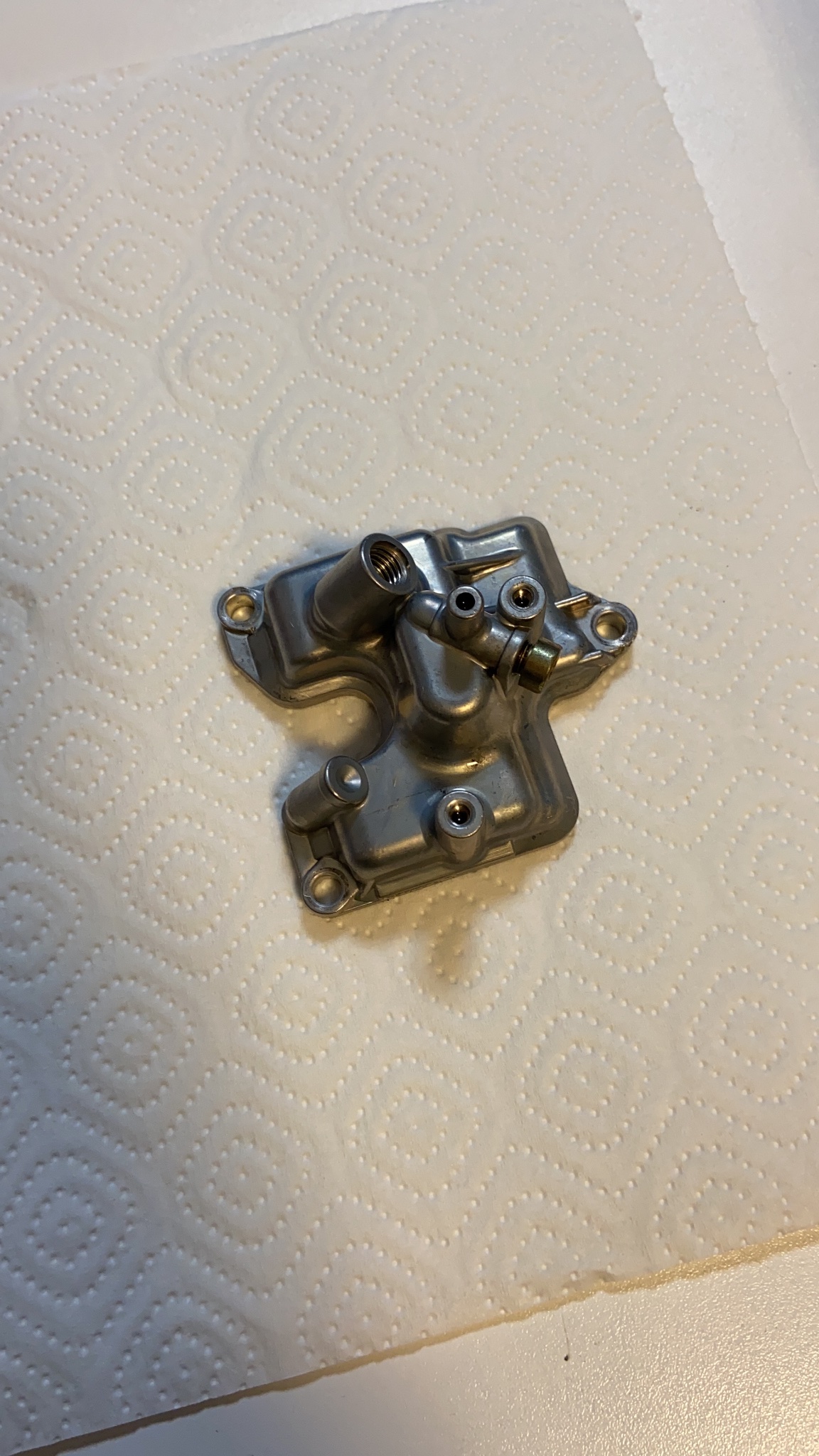 Das Benzin trat aus einer Stelle zwischen „Deckel“ und Vergaser aus.