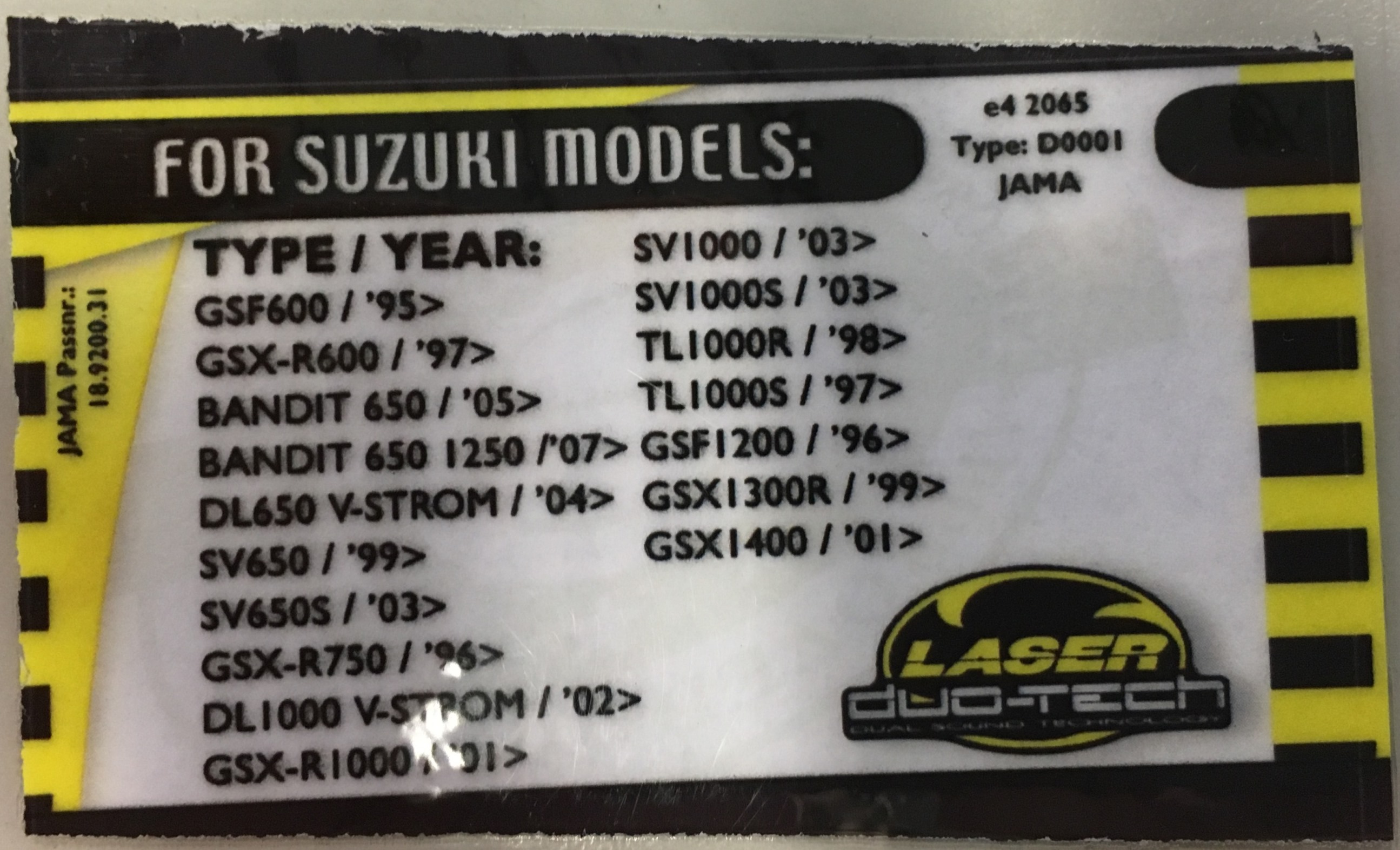 Das ist das Kärtchen dazu. Jetzt stellt sich mir nur noch die Frage, wie ich daraus lesen soll, dass dieser auch für die SV650 AV zugelassen ist.