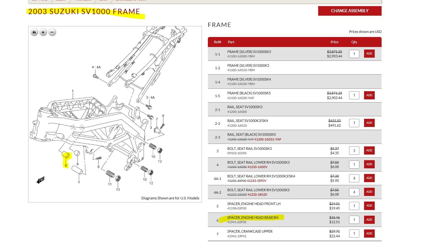 Weiss jemand von Euch ob der Spacer Teil 6, Art.Nr. 41941-02F00 der SV1000 auch für SV650 passt oder hat jemand eine Explosionszeichnung mit Teilenr. für Europamodelle?