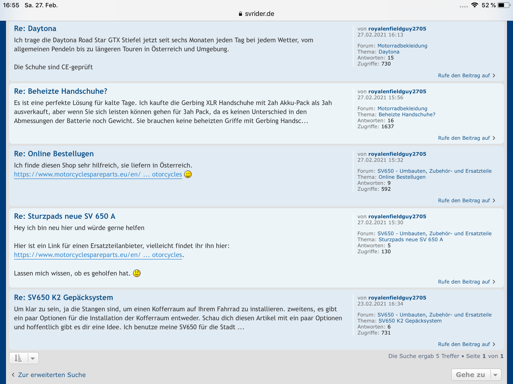 saihttaM hat geschrieben:Für Originalteile gucke ich bei bike-parts-suz.de nach der Nummer und dann über Google, wo ich es am günstigsten bekomme. Bei mehreren Teilen auch gerne bei kfm-Motorräder.de.