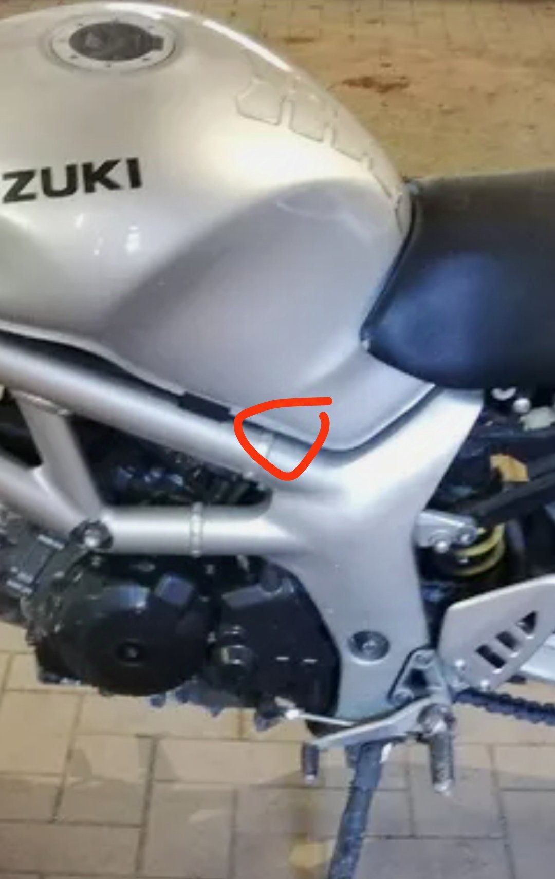 An der Stelle sind nur 1cm zwischen Rahmen und Tank