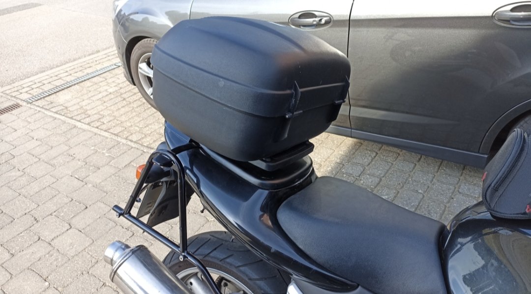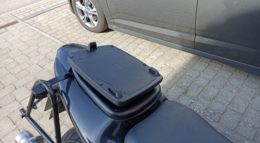 Ich habe damals auch eine Platte auf dem Sozius befestigt. Meist für die Fahrt zur Arbeit um dann den Helm einschließen zu können.