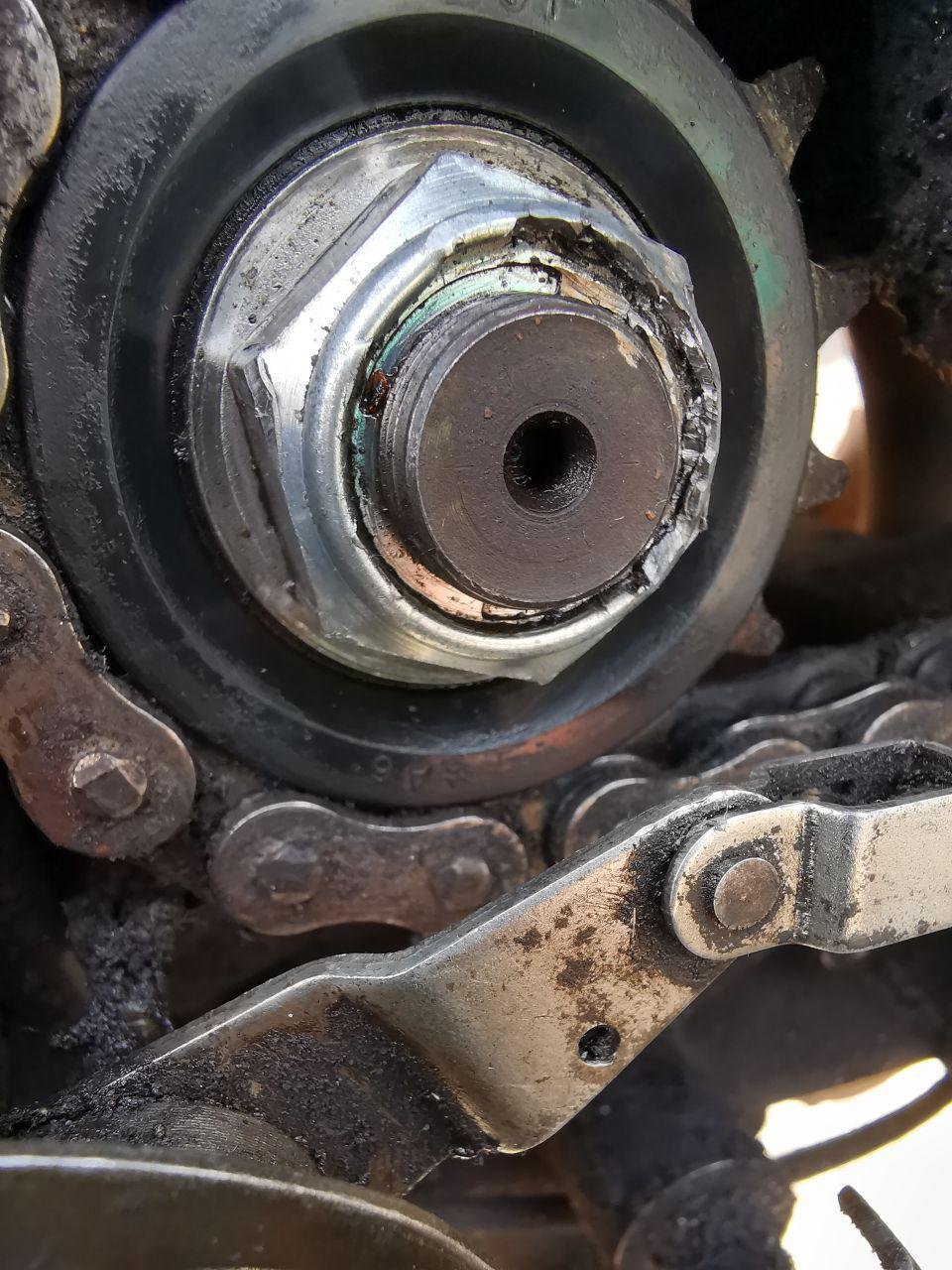 Die Mutter war mit Loktite eingeklebt, und das Sicherungsblech lag darunter und wurde nicht hochgebörtelt. Da sollte ich wohl mal mit meinem freundlichen schnacken der das vor ein paar Jahren gemacht hatte.